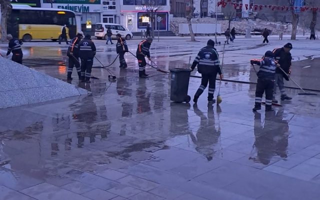 Aksaray Belediyesi, güne daha temiz bir şehir hedefiyle şafak vaktinde başladı. Belediye ekipleri, sabahın ilk ışıklarıyla birlikte çarşı merkezi ve şehir meydanında kapsamlı bir temizlik ve yıkama çalışması gerçekleştirdi.